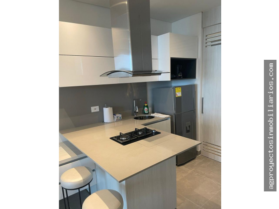 Hermoso apartamento en venta amoblado tipo Loft con un área de 41,6 m2 , consta de una habitación, closets ,cama doble con dos mesas de noche, ropa de cama y toallas sofá cama, televisor pantalla plana, cortinas tipo blackout,escritorio con silla, cocina tipo americano con estufa, campana, horno microondas, cafetera , nevera , mesón en mármol con silla ,baño, zona de labores, lavadora , balcón con silla y mesa , mueble divisor, aire acondicionado , menaje de cocina, , vista panorámica y un parqueadero .
