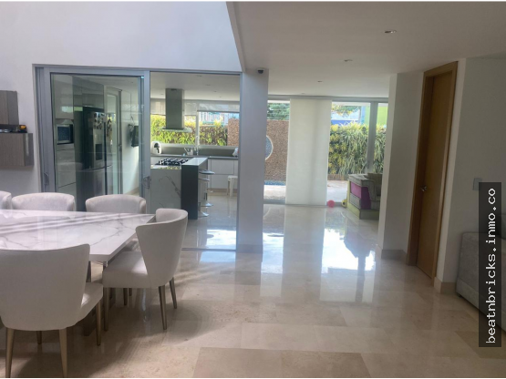 Distribución: 3 alcobas, cada una con baño privado, sala,comedor,family room, home theatre, cocina moderna, cuarto de servicio,piscina privada.
